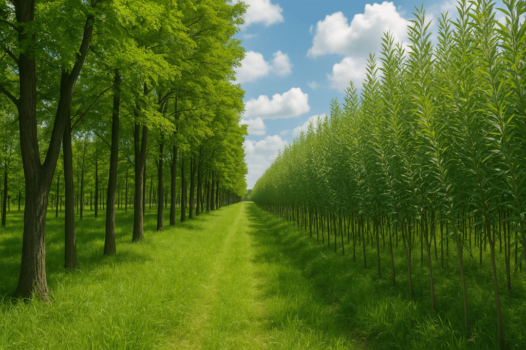 Willow excels at phytoremediation and rapid biomass; black locust adds nitrogen fixation and resilience—together delivering yield, soil benefits, and operational redundancy.